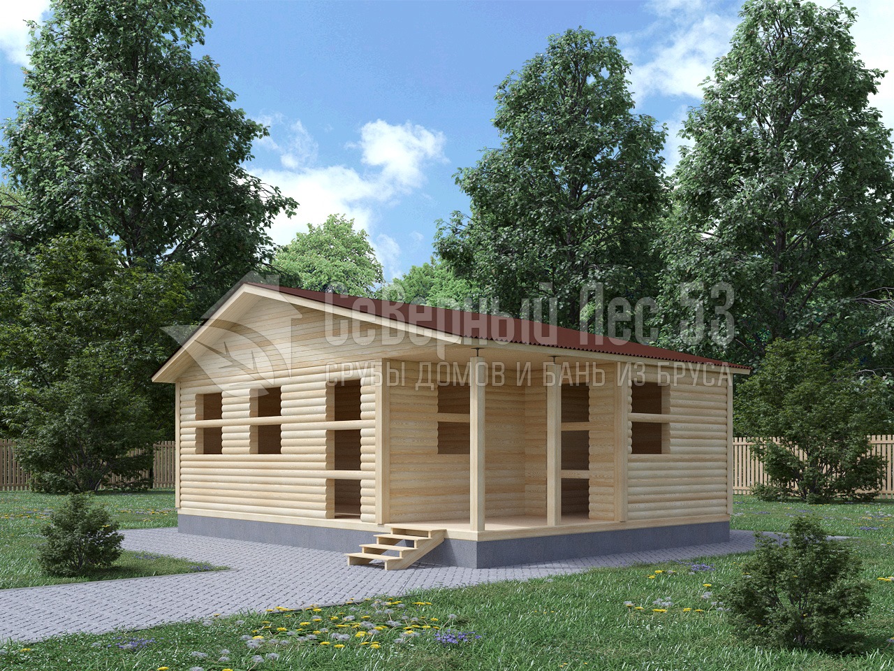 Профилированный брус 90×140; 140×140 мм или 190×140 мм (естественной влажности), с наружной стороны прямой или под блок-хаус, с внутренней — прямой.