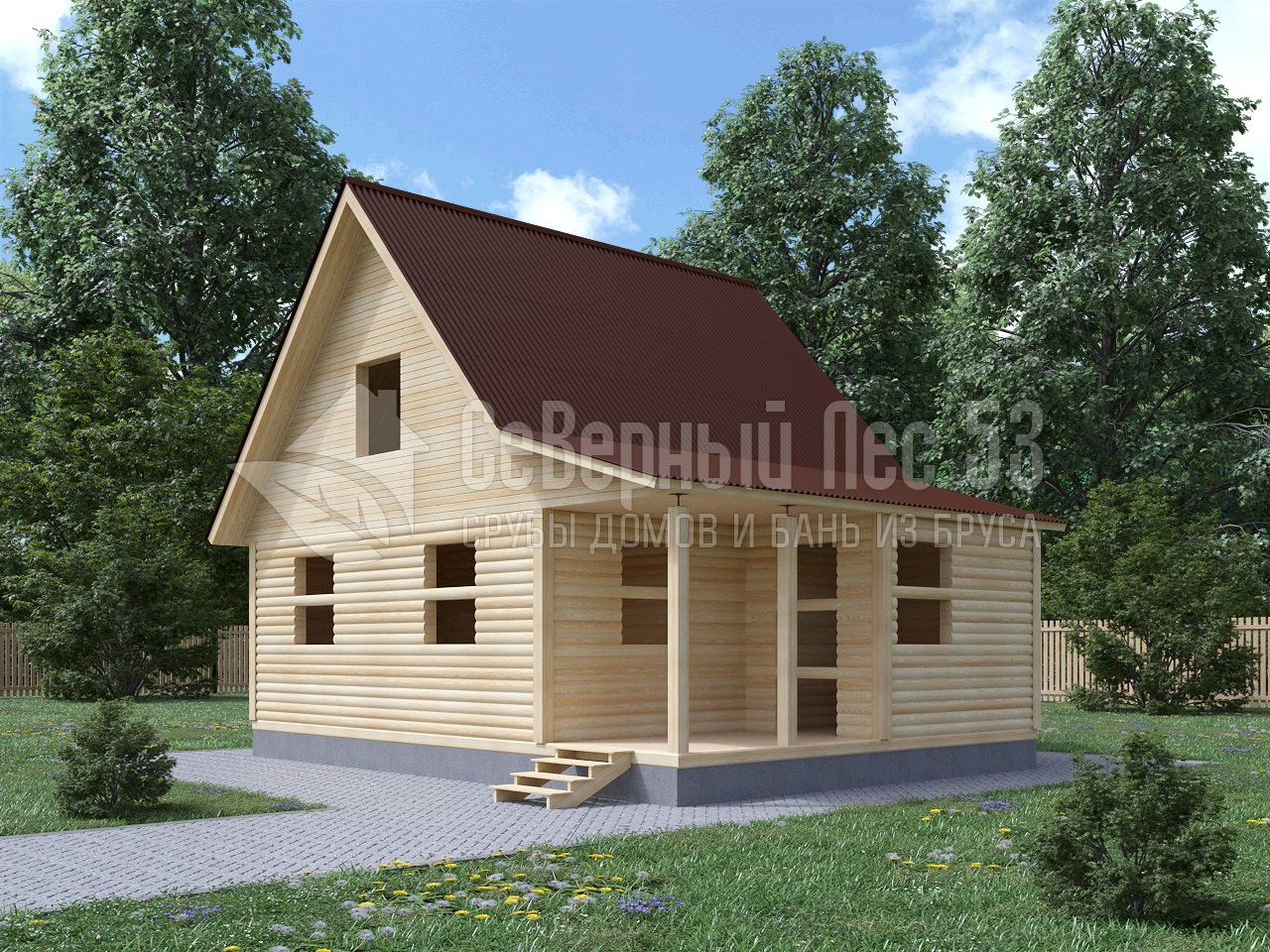 Профилированный брус 90×140; 140×140 мм или 190×140 мм (естественной влажности), с наружной стороны прямой или под блок-хаус, с внутренней — прямой.