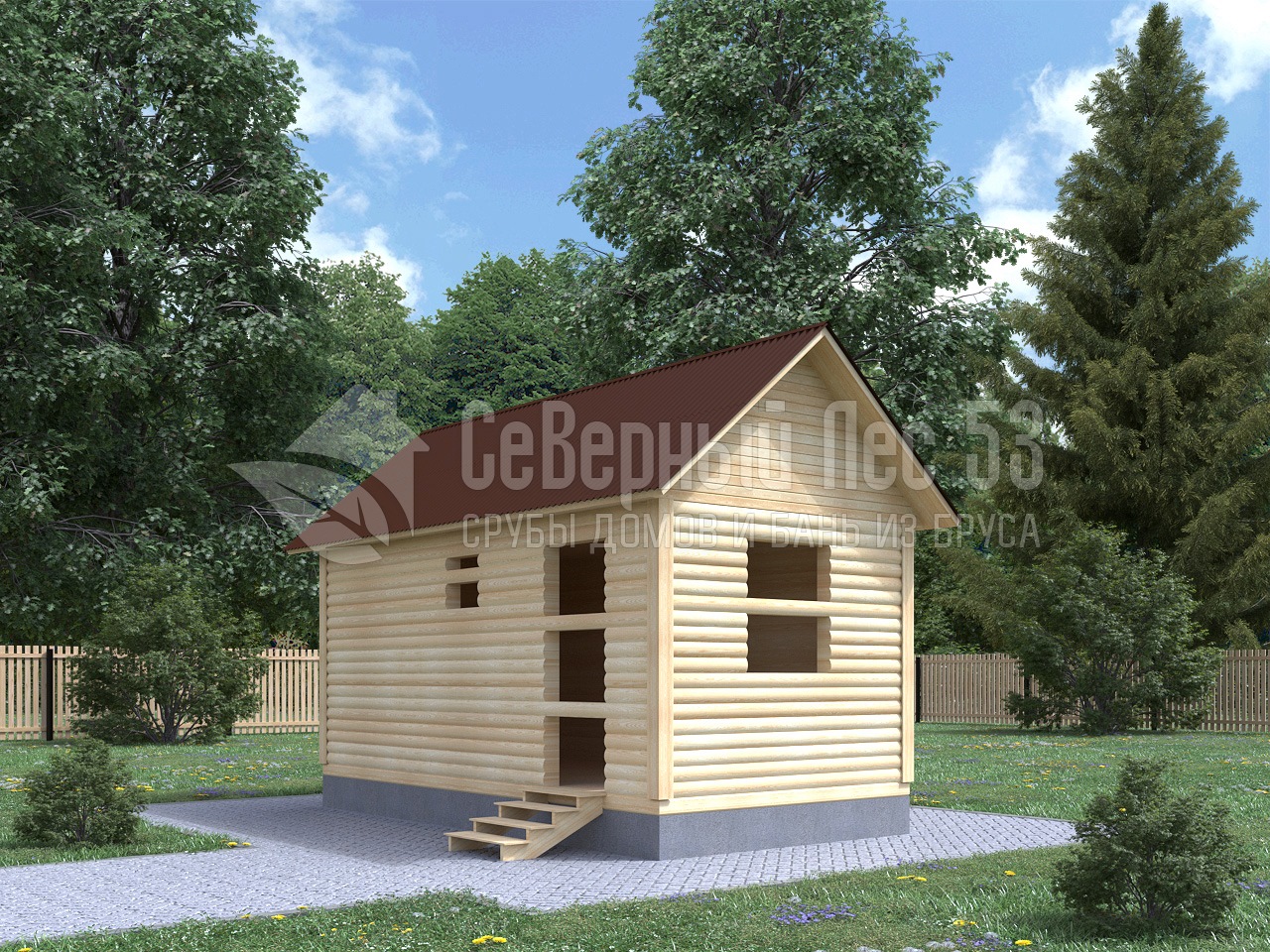 Профилированный брус 90×140; 140×140 мм или 190×140 мм (естественной влажности), с наружной стороны прямой или под блок-хаус, с внутренней — прямой.