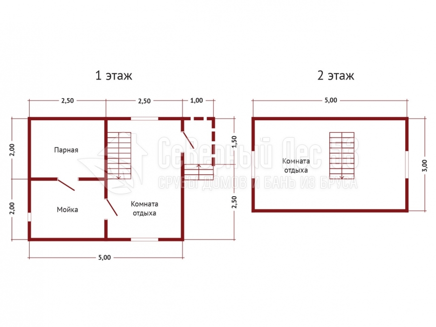 Профилированный брус 90×140; 140×140 мм или 190×140 мм (естественной влажности), с наружной стороны прямой или под блок-хаус, с внутренней — прямой.