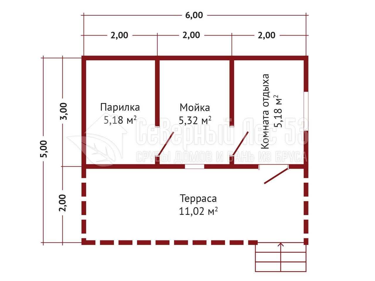 Сруб бани из бруса 5х6 м.