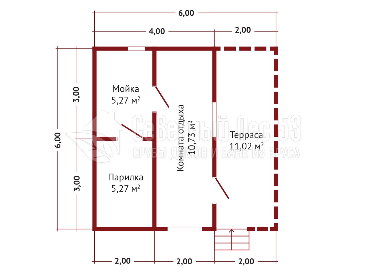 Сруб бани из бруса 6х6 м.
