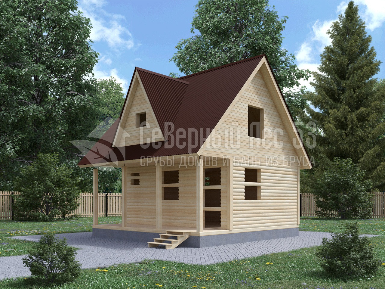 Профилированный брус 90×140; 140×140 мм или 190×140 мм (естественной влажности), с наружной стороны прямой или под блок-хаус, с внутренней — прямой.