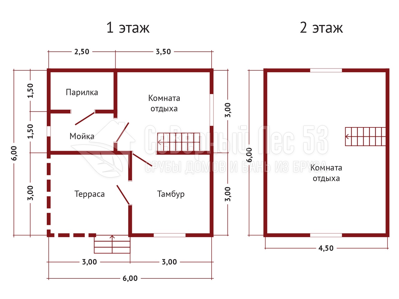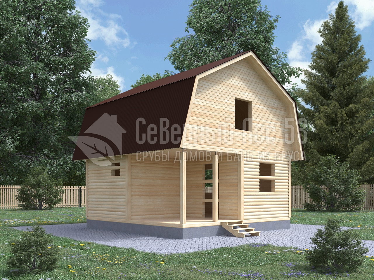Профилированный брус 90×140; 140×140 мм или 190×140 мм (естественной влажности), с наружной стороны прямой или под блок-хаус, с внутренней — прямой.