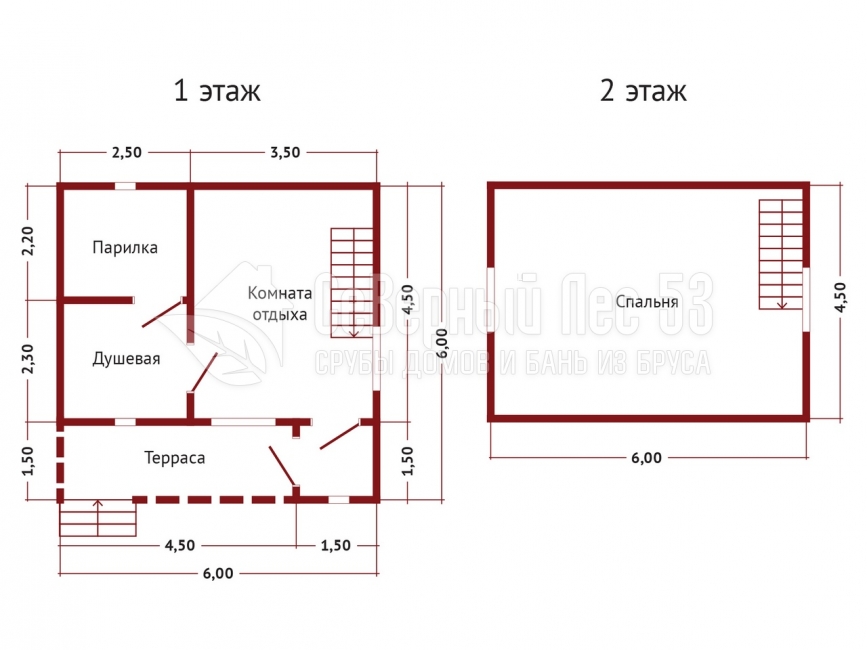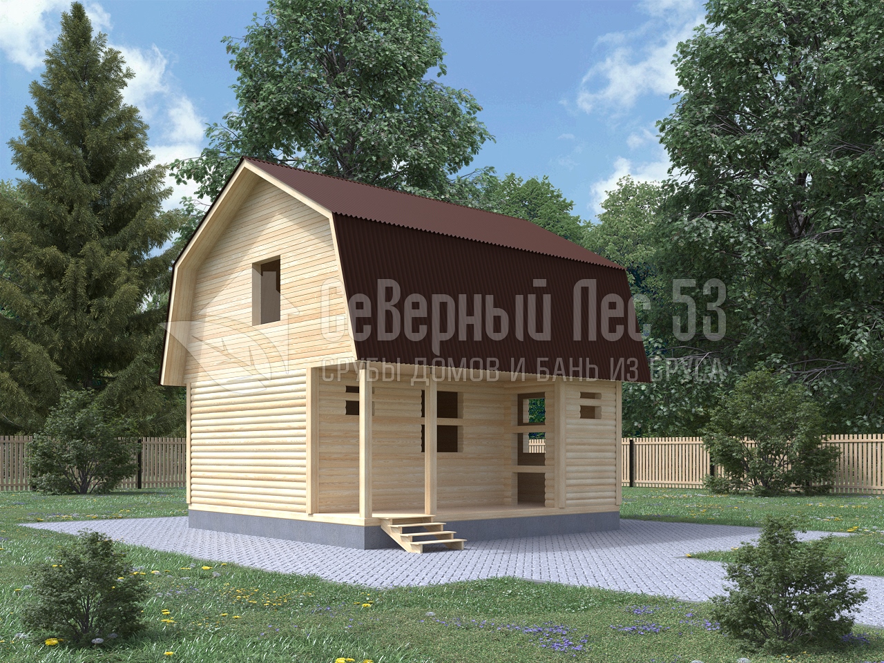Профилированный брус 90×140; 140×140 мм или 190×140 мм (естественной влажности), с наружной стороны прямой или под блок-хаус, с внутренней — прямой.